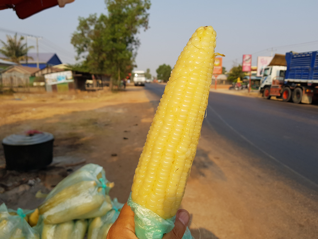 아마도 캄보디아에 처음 온 도보 여행자라면 옥수수를 한 묶음 사서 배낭에 넣었을 것이다. 옥수수는 다섯 개 묶음으로 팔았다. 하지만 옥수수 5개는 무게가 꽤 나간다. 나는 캄보디아를 어느 정도 알기에 배낭 무게를 더 생각했다. 내가 걷는 5번 국도에서 이제 나는 마실 물과 먹는 걱정을 안 해도 될 정도로 캄보디아를 잘 안다고 할 수 있다.