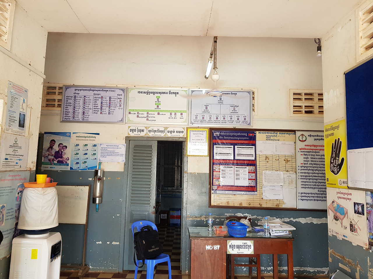 캄보디아 도로를 달리는 광경을 보면 소형 차량 지붕에 짐을 잔뜩 올려놓고 끈으로 매어 위태롭게 달리는 풍경이나 화물차에 짐을 가득 실은 그 위에 앉아가는 사람 등등 한국에서는 상상하기 힘든 광경을 많이 본다. 오토바이는 더하다. 어린아이를 뒷 자석에 서너 명씩 태우고 가는 경우도 허다하다. 어린아이를 태운 오토바이는 늘 위험천만하게 보인다. 더 황당한 광경을 목격하기도 했다. 환자가 링거 주사를 꽂은 채 한쪽 팔로 링거를 들고 오토바이 뒷 좌석에 타고 달리고 있었다. 서커스도 이런 서커스는 없을 듯하다. 환자가 심각한 상태가 아니니 그렇게 타고 가겠지만 쳐다보는 내가 더 맘 졸여진다. 캄보디아의 의술이나 병원 시설은 아주 열악하다. 대도시 큰 병원은 대부분 외국 원조로 지어졌다. 하지만 보건소는 시골 동네 구석구석 다 있다. 간단한 진료를 하는데 비용은 무료다. 그러다 보니 병을 치료하기보다는 간단한 처방 정도 하는 것 같았다. 보건소에는 보통 간호사 대여섯명과 의사 두세 명이 있었다. 점심시간에 들른 보건소에서 간호사들의 친절한 설명을 들었다. 간호사의 월급은 300달러. 의사는 500달러. 이 월급이니 의사는 다른 병원에 근무하며 투잡을 하는 것 같았다. 보건소 안에는 환자 네댓 명과 간호사 두 명만이 있었다.