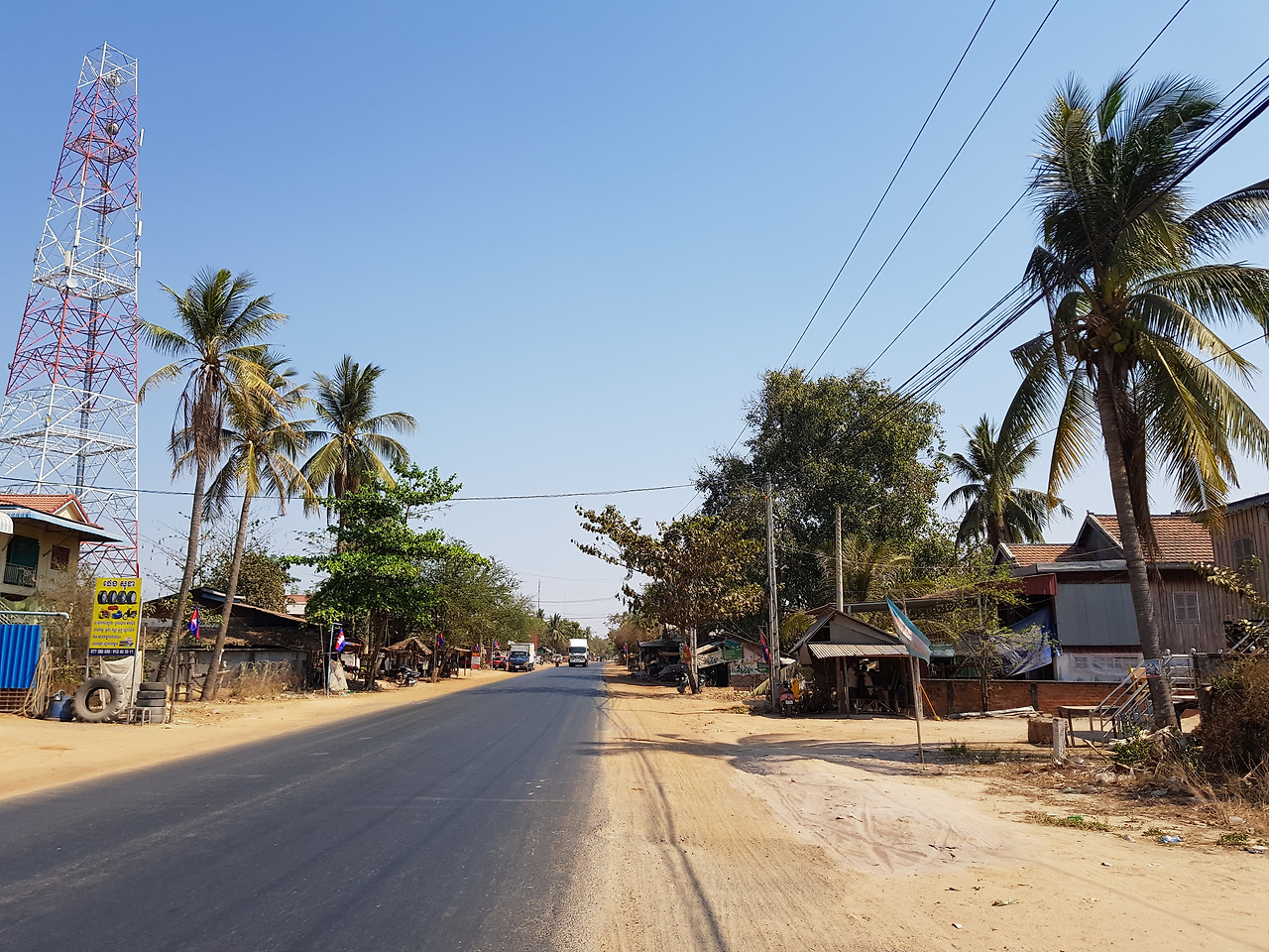 오늘 묵을 곳은 폰레이라는 소도시다. 사전 조사한 것에서 유일하게 숙소를 정하지 못한 곳이라서 걸으며 여러 생각이 들었다. 혹시 케스트하우스가 없다면 어디서 자지? 약국이나 병원, 학교 교무실에 가서 사정을 얘기하고 누군가의 집에서 하루 신세를 질까? 그것도 안되면 노천 평상에서 잘까? 이런 생각을 하다 보니 시골집 마당의 해먹이나 길거리 가게 옆의 평상이 유난히 눈에 들어온다. 나는 여러 상황을 준비해야 했다. 게스트하우스가 없다면 민박을 할 생각이었는데 이게 어렵다는 걸 조금 뒤 알게 되었다. 폰레이 목적지를 5km 앞두고 나는 오늘의 잠자리에 온통 신경을 쓰며 걷고 있었다. 되도록이면 빨리 도착하여 이 문제를 해결하고 싶었다. 3시면 도착할 것 같았다. 한참을 걷고 있는데 저 앞의 길가에 SUV 차량 한 대가 계속 서 있는 것이었다. 내가 다가가니 차량에서 한 남자가 내렸다. 그는 나와 얘기하고 싶어 기다리고 있던 중이었다. 내가 걸어서 프놈펜까지 간다는 것을 알고 있는 듯했다. 마침 나는 오늘 잠자리 문제가 머릿속에 있던 터라 그 남자에게 폰레이에 게스트하우스가 있는지 물었다. 그는 이곳에 살고 있지 않았다. 처갓집에 일이 있어 들렀던 길이었다. 게스트하우스가 있는지를 몰랐다 그래서 나의 사정을 얘기하며 오늘 잘 곳이 마땅치 않으면 모르는 사람 집에서 하룻밤 신세를 져야 할 것 같다고 말했다. 하지만 그 남자는 캄보디아에서는 그게 쉽지 않을 거라고 말했다. 잠자리 도움을 못줘서 미안하다며 저녁식사를 대접하고 싶다고 했다.