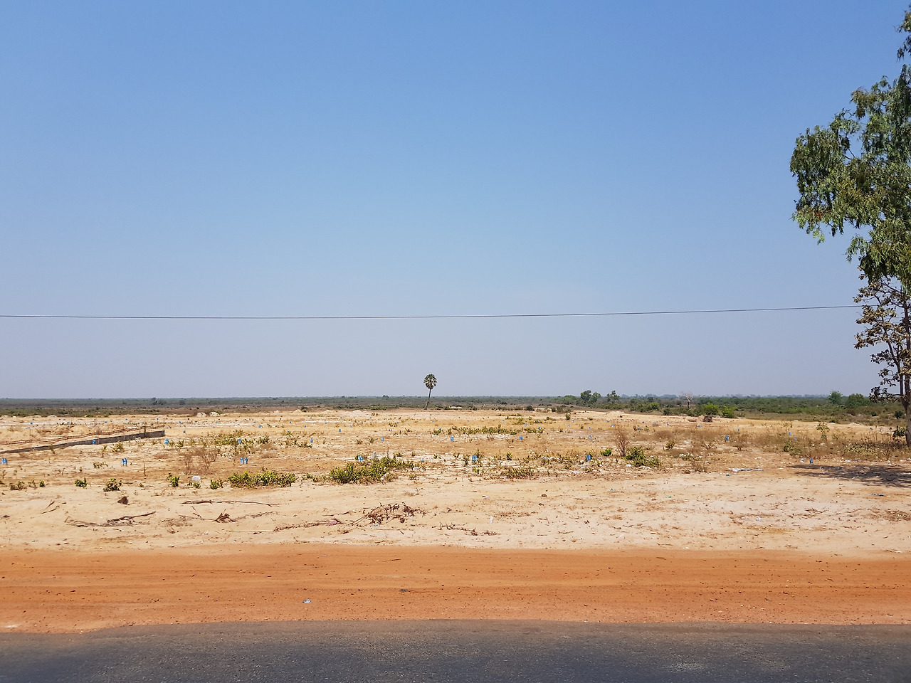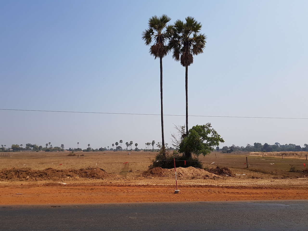 뽀삿주 뽀삿시를 떠나 깜퐁츠낭주 깜퐁츠낭시까지 가는 길은 캄보디아의 내륙 중앙으로 큰 도시가 없다. 그래서 나는 100km의 이 길을 3일간 걷기로 했다. 게스트하우스가 크라꺼와 폰레이라는 소도시(읍단위 규모)에 있기 때문이다. 어제 크라커에서 묵었고 오늘은 폰레이라는 또 다른 소도시를 향해 걷는다. 걷는 길에는 집도 별로 없고 좌우 눈에 보이는 것은 광활한 논이다. 올해 캄보디아의 가뭄은 더 심한 듯하다. 나는 걸으며 온 국토가 메말라 가는 현장을 눈으로 직접 보았다. 이러한 풍경은 가뜩이나 더운 날씨를 더욱 덥게 느끼게 만든다. 요즘 한낮의 온도는 35도를 웃돈다. 자외선도 강해 마치 사막을 걷는 듯한 느낌이다.