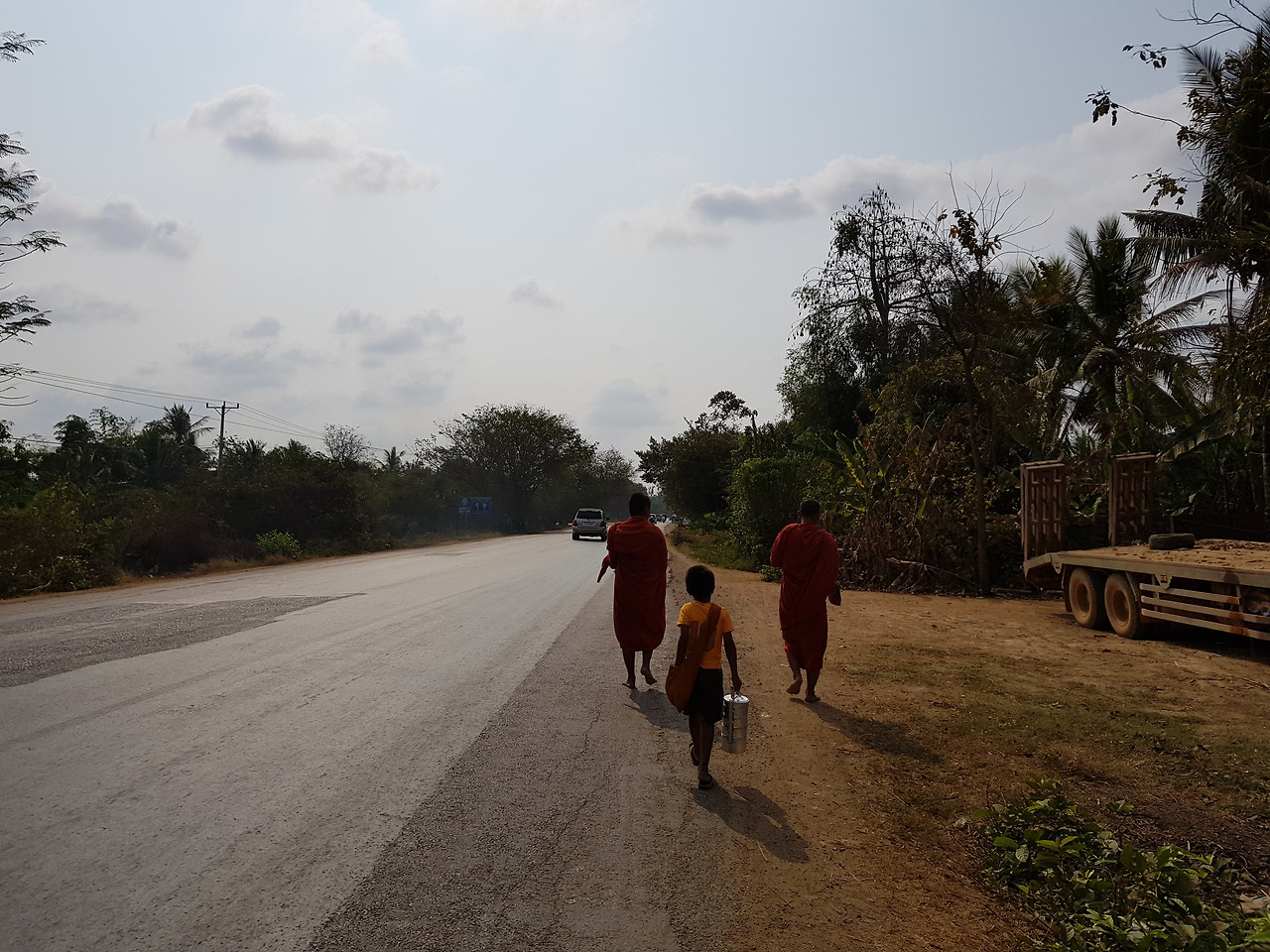 맨발로 탁발을 하러 다니는 캄보디아 스님