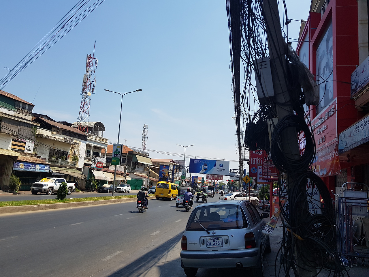 프놈펜이 20km 앞으로 다가왔다. 지금 걷는 곳에서부터는 제법 도시 냄새가 난다. 얼기설기 엉킨 전기줄이 도시의 번잡함을 말해주고 있었다.