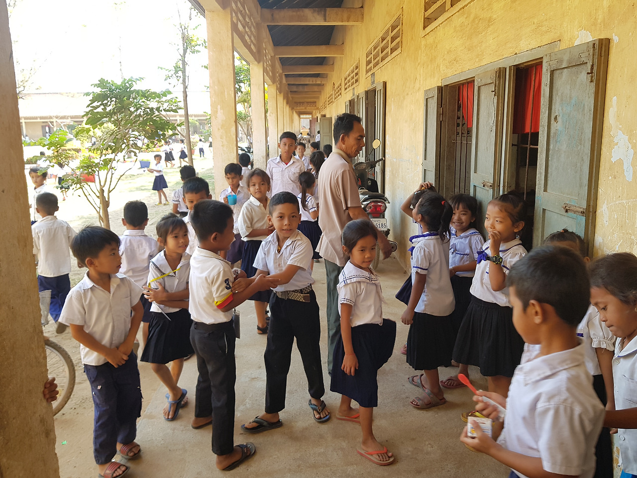 돈레삽 강을 끼고 잇는 초등학교의 학생들
