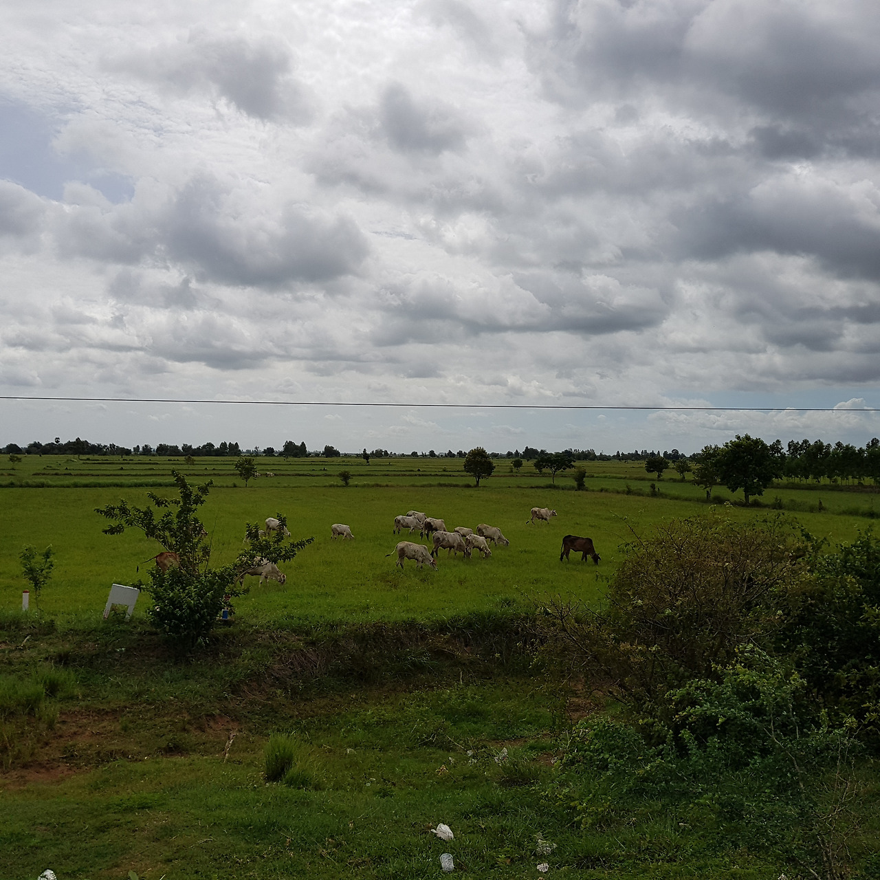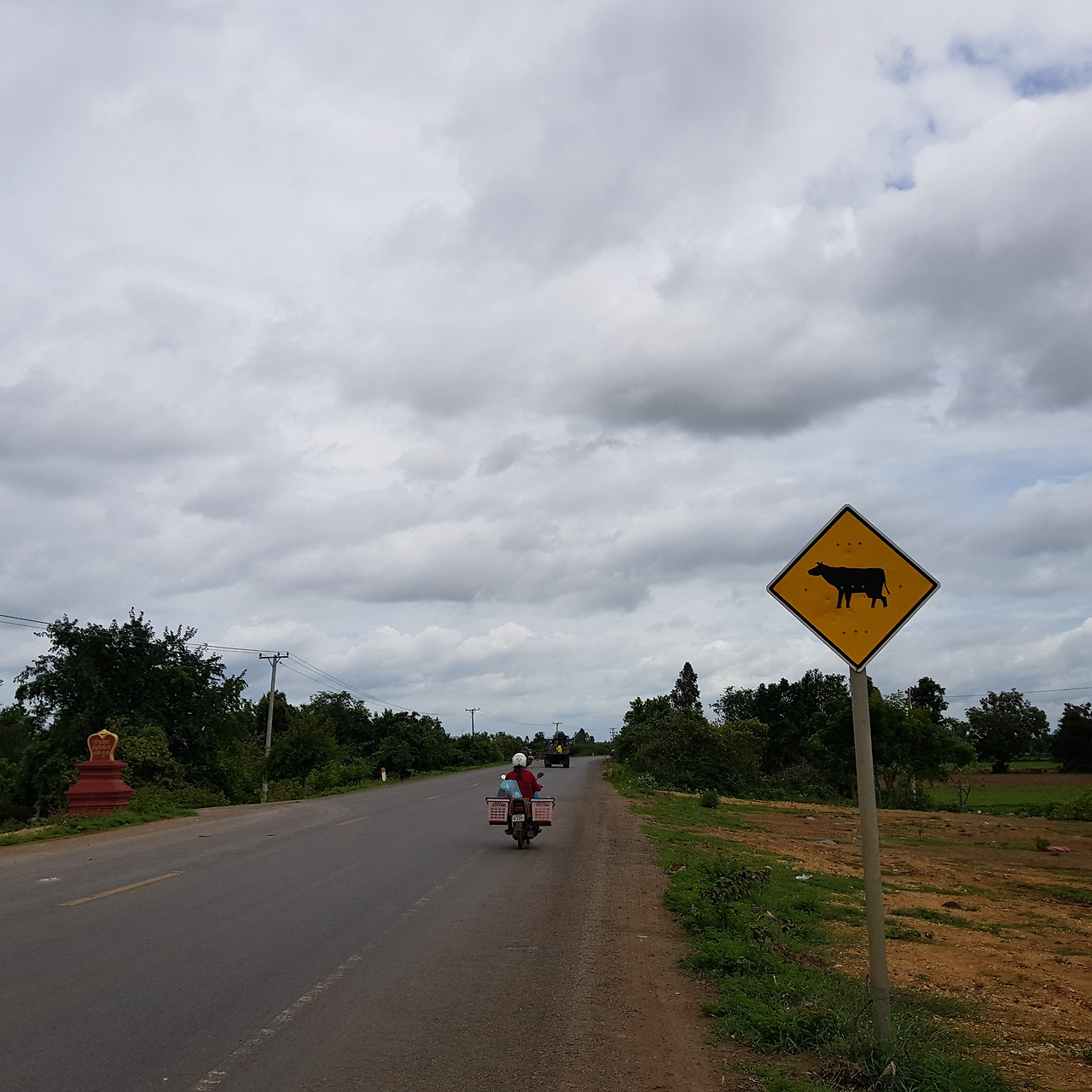 캄보디아는 시내를 조금만 벗어나도 아름다운 자연을 만날 수 있다. 한가로이 풀을 뜯는 소의 모습은 한껏 자연의 정취를 더해 준다. 가끔 달리다 보면 길을 건너는 소를 만나기도 한다. 소를 주의하라는 표지판이 도로에 많다. 우리나라에는 없는 표지판이라 이채롭다.
