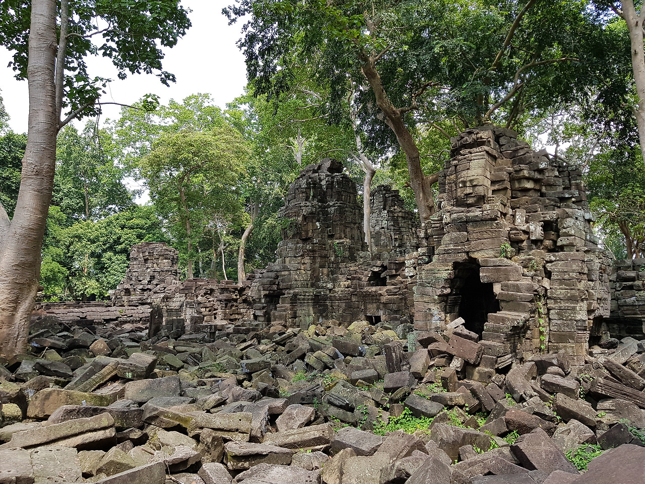7시에 출발해서 반티츠마 방향으로 뛰었다. 오래 달리기에 이쪽 길이 차량도 적고 도로 사정도 좋다. 반티츠마는 가장 화려한 앙코르 제국을 연 자야바르만 7세가 전쟁에서 죽은 아들을 위로하기 위해 12c 지은 사원이다. 크기가 엄청나서 작은 앙코르톰이라고 불린다. 그 성안에는 또 다른 도시가 형성되어 있었다. 지금은 다 무너져 내려 복원조차 힘들다.