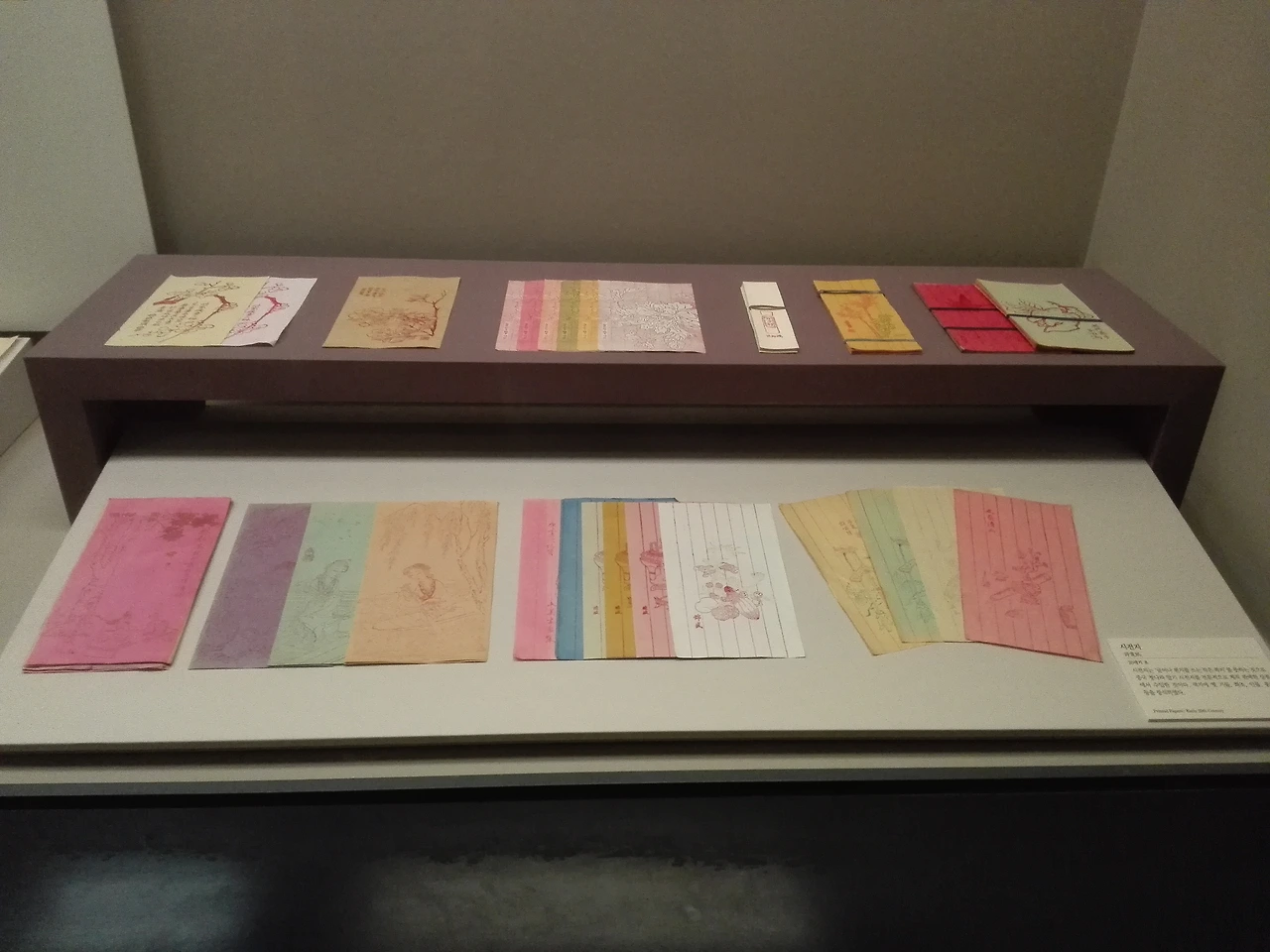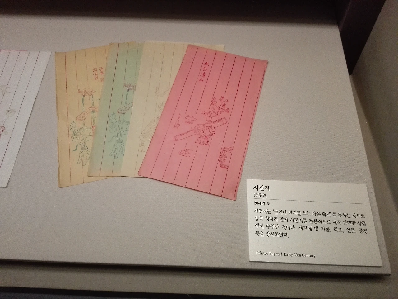 청나라에서 수입한 시전지(詩箋紙)라는 설명이다. 시전지는 '글이나 편지를 쓰는 작은 쪽지'를 뜻한다고 하는데, 이렇게 아름다운 외국산 시전지는 양반들이나 쓸 수 있을 정도로 엄청나게 비쌌을 것이다.