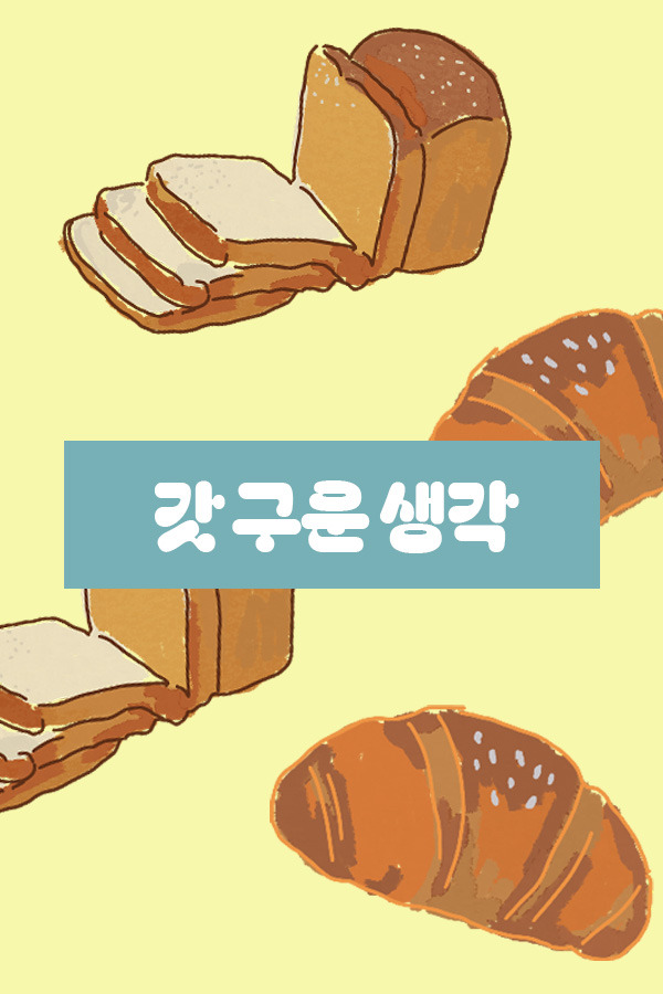 제목이 왜 '갓 구운 생각'이냐면요. 원래는 이 제목이 아니었어요. 뭔가 '제목을 만들어 볼까?'라는 생각을 하면 정말 생각이 안 나요. 생각이 안 나면 그나마 다행인데, 제 머리는 정말 딱딱하게 굳었는지 되게 식상한 제목만 생각나는 거예요. 생각일기, 이야기 통, 뭐 이런 형식적인 것들이요. 그때 그냥 옆에 놓여있던, 아직 열어보지 않은 새 책을 휘리릭 넘기는데 '갓 구운 빵이 맛있고, 어쩌고' 이런 이야기가 있는 거예요. 아, 내가 지금 만드려는 매거진도 갓 구운 빵처럼 갓 튀어나온 그런 이야기니까, '갓 구운 생각'으로 하자. 그래서 '갓 구운 생각'이 됐어요.