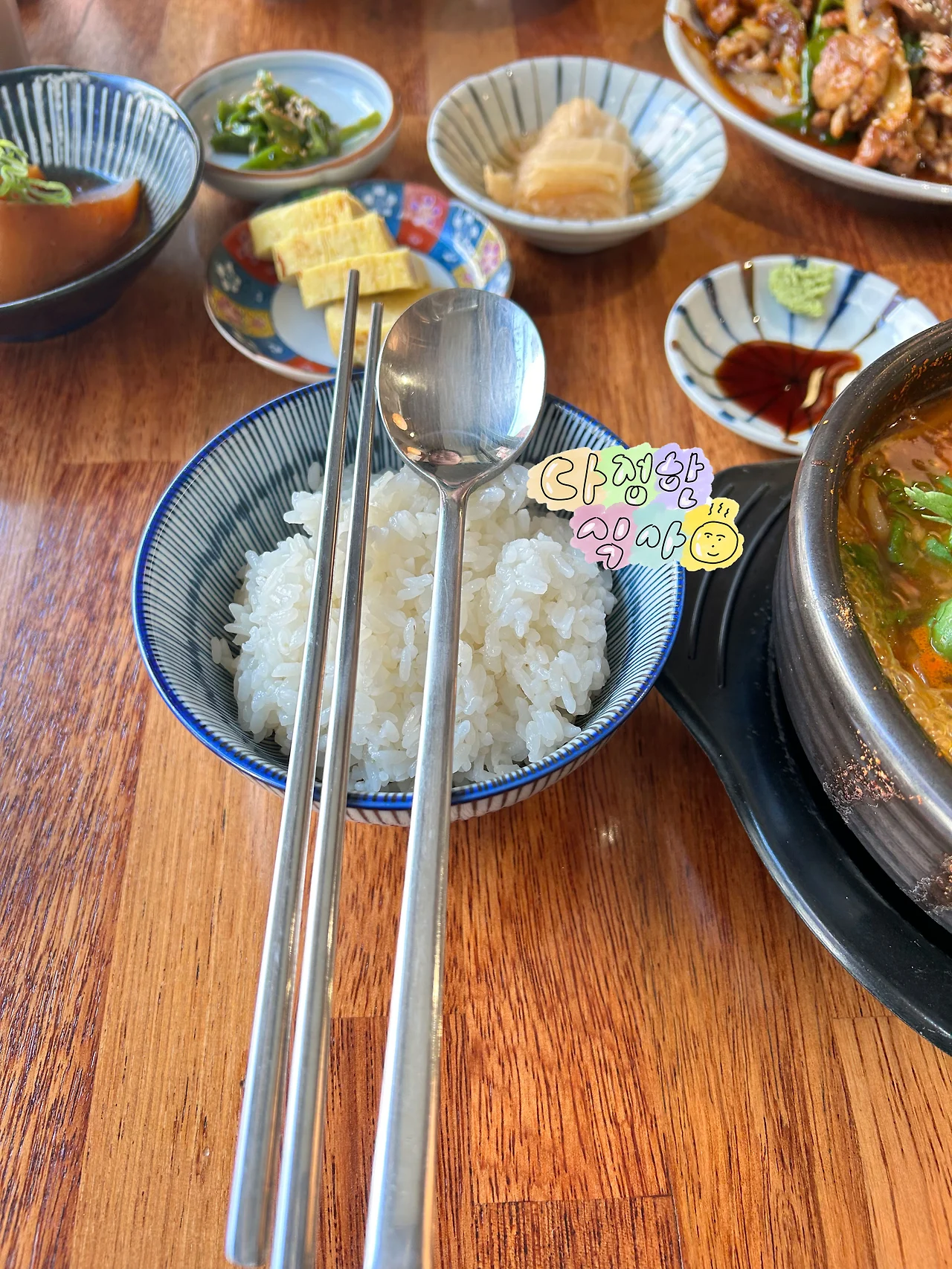 니글거리는 속을 알탕으로 풀었다. 초극강 맵찔이도 맛있게 먹을 수 있는 알탕. 좋다. 쌀밥에 국물 한 입, 알 한 입. 쌀밥에 찬으로 나온 간장 무조림 한 입, 계란말이 한 입. 너무 더워 땀이 났으나 입과 속은 즐겁다.
