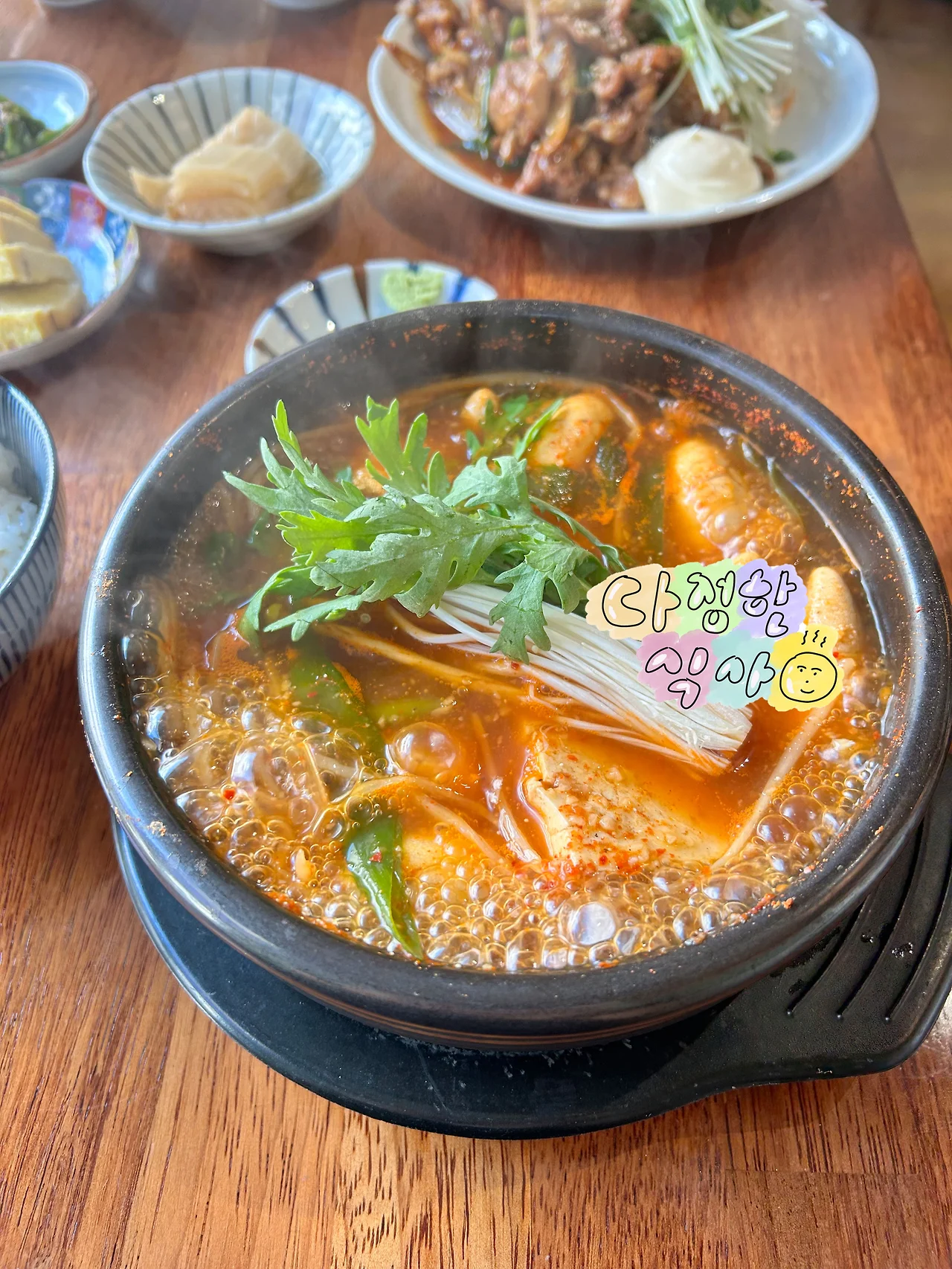 뭘 먹을까 고민하다 알탕을 골랐다. 뚝배기에서 부글거리는 알을 한 입 씹고, 너무 뜨거워 물을 마셨다. 만만치 않은 녀석이다. 고니 없는 알탕이 묘하게 허전했으나, 점심메뉴엔 고니알탕이 없다.(저녁만 있다.)