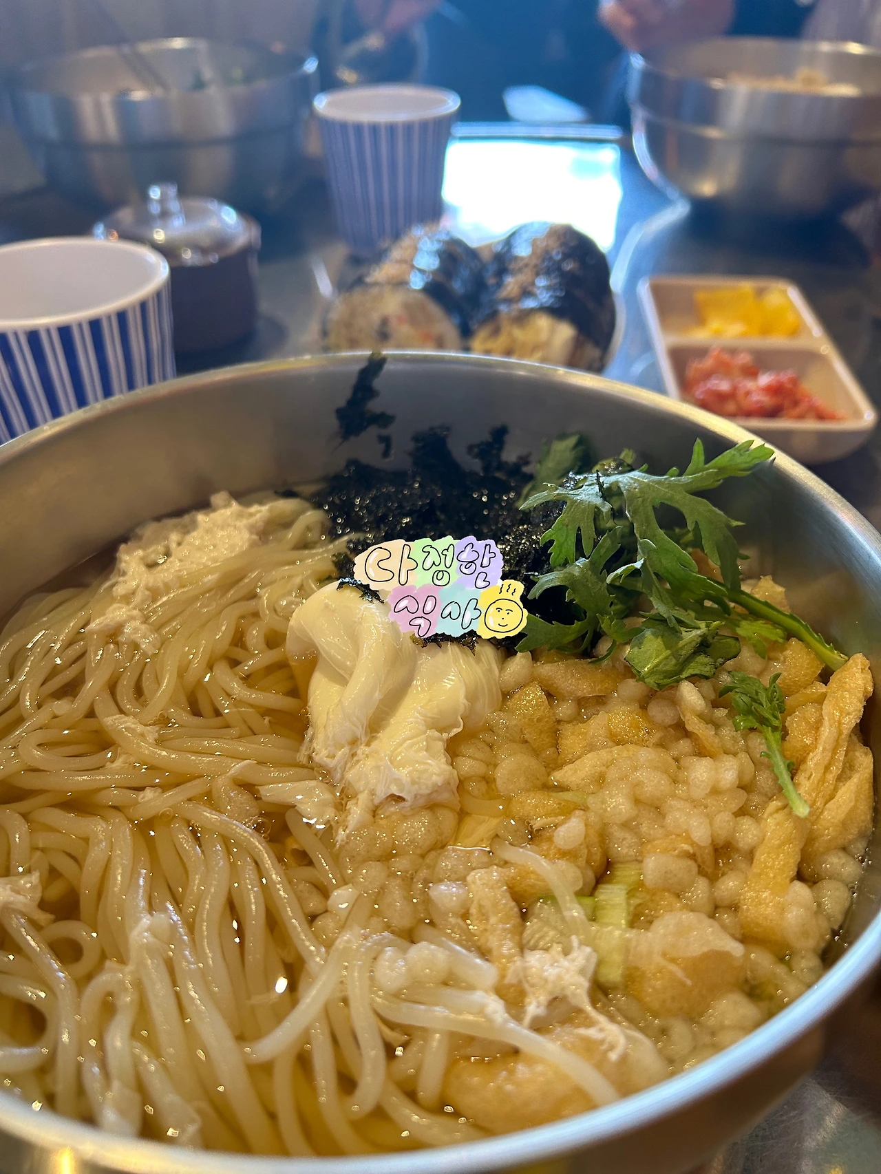 고명이 초라했다. 휘휘 저으니 유부들이 붕 떠오른다. 바닥에 가라앉아 있었나보다. 늘 그렇듯 다진 양념을 넣어 약간 매콤하게 먹는다. 게다가 꼬들 단무지를 첨가하면 그 어떤 음식보다 맛있다.