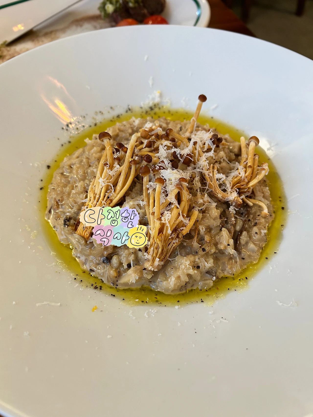 뭔가 부족해 리소토를 추가했다. 밥이 설익었다. 풍부한 트러플 소스가 입 안에서 요동친다. 밥이 설익었다고? 순간 흑백요리사의 어느 대결 중 백종원 아저씨가 ‘이 정도는 이제 사람들이 (설익은게 아니라는 걸)알지.’라고 말한 대목이 생각났다. (결국 밥이 설익어서 대중의 선택을 받지 못했다. 그 대중이 나인가보다.)
