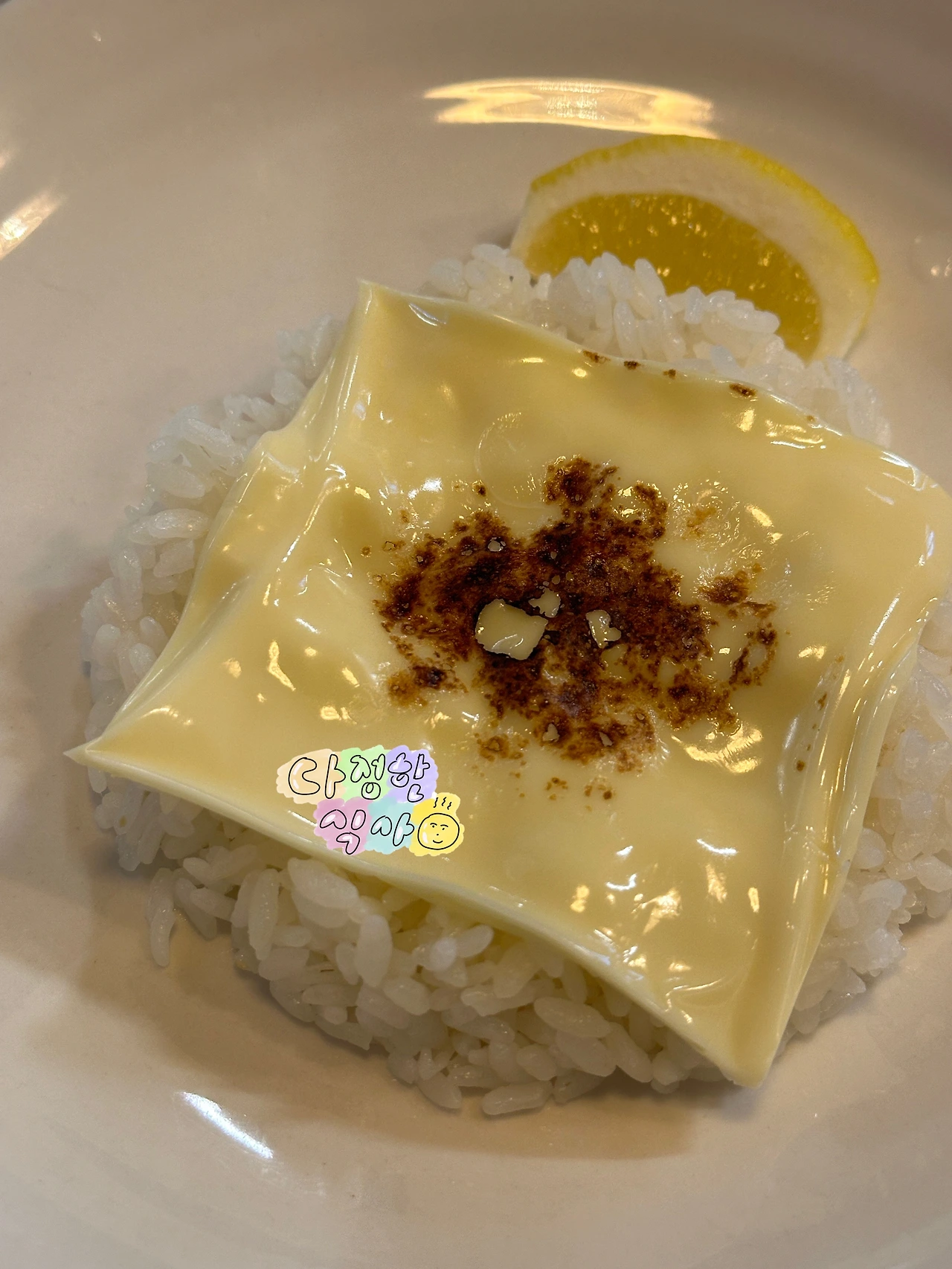 치즈밥을 같이 시켰다. 누군가가 이 밥과 함께 먹어야 한다기에. 눅진한 치즈 한 장 들어갔다고 밥 풍미가 달라진다. 가벼운 밥이 약간 무거워졌다.