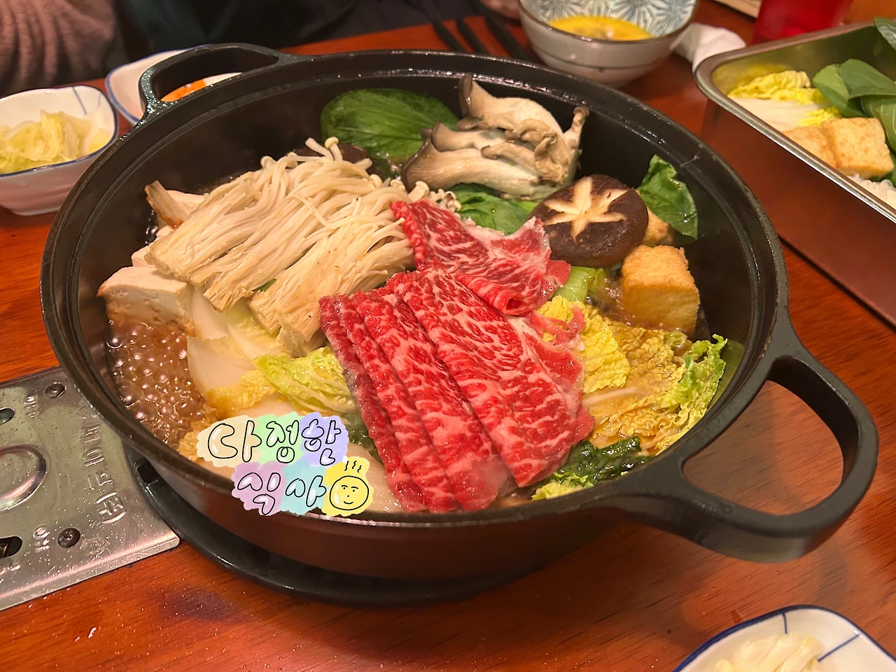 스키야키(すきやき)는 처음이다. 날계란을 먹지 않는데 일단 매뉴얼대로 해본다. (참고로 나는 먹는 방법이 있는 식당을 좋아한다.) 휘휘 저은 날계란에 고기를 푹 찍어 먹는다. 첫 스키야키의 맛은?