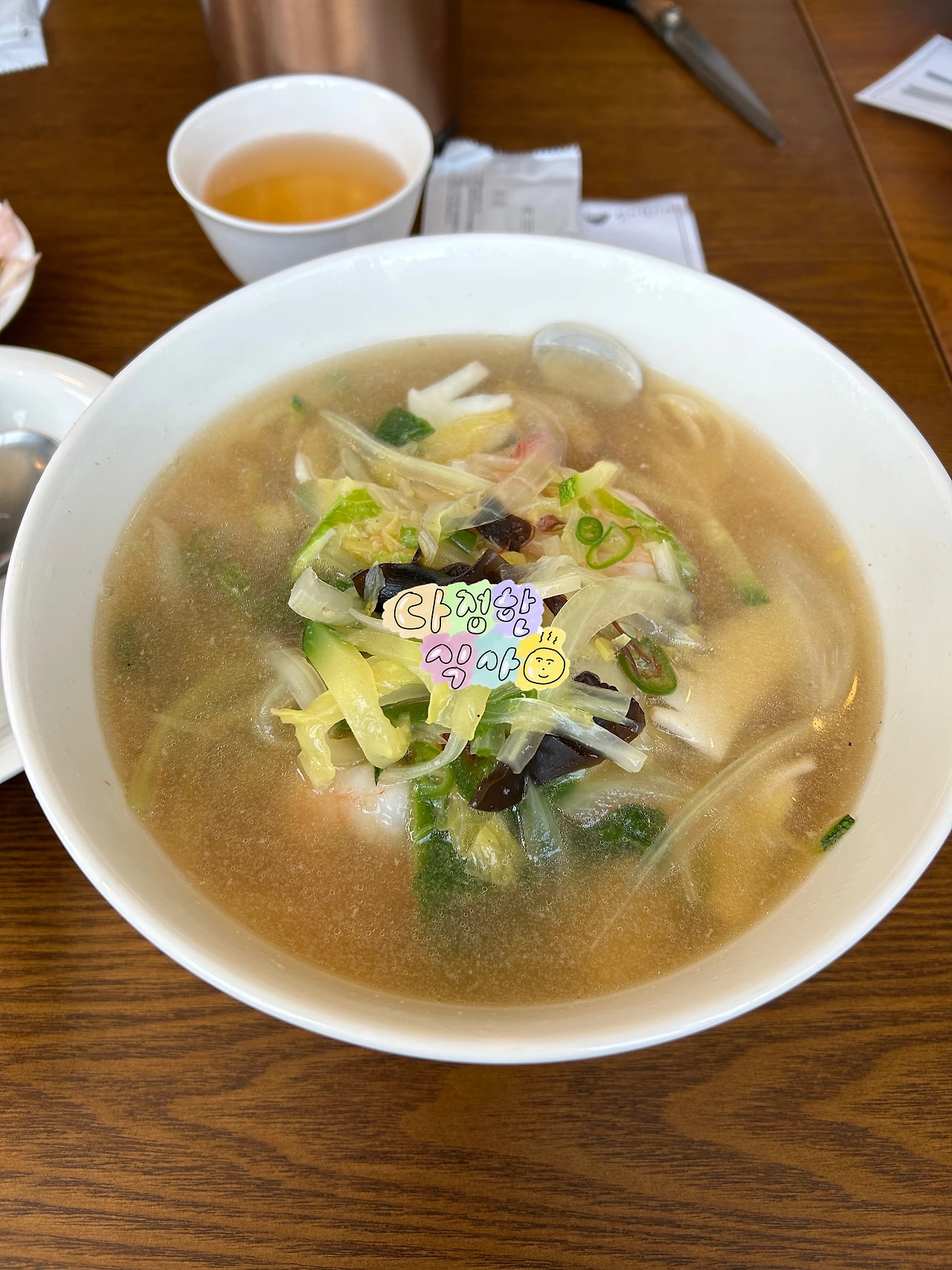 백짬뽕이 정식 이름은 아니다. 약간 쿰쿰한 냄새가 나는 짬뽕. 청양고추가 있어 특이하다 생각했지만 맵찔이에게 그다지 타격을 주지 못하는 맵기. 좋다!