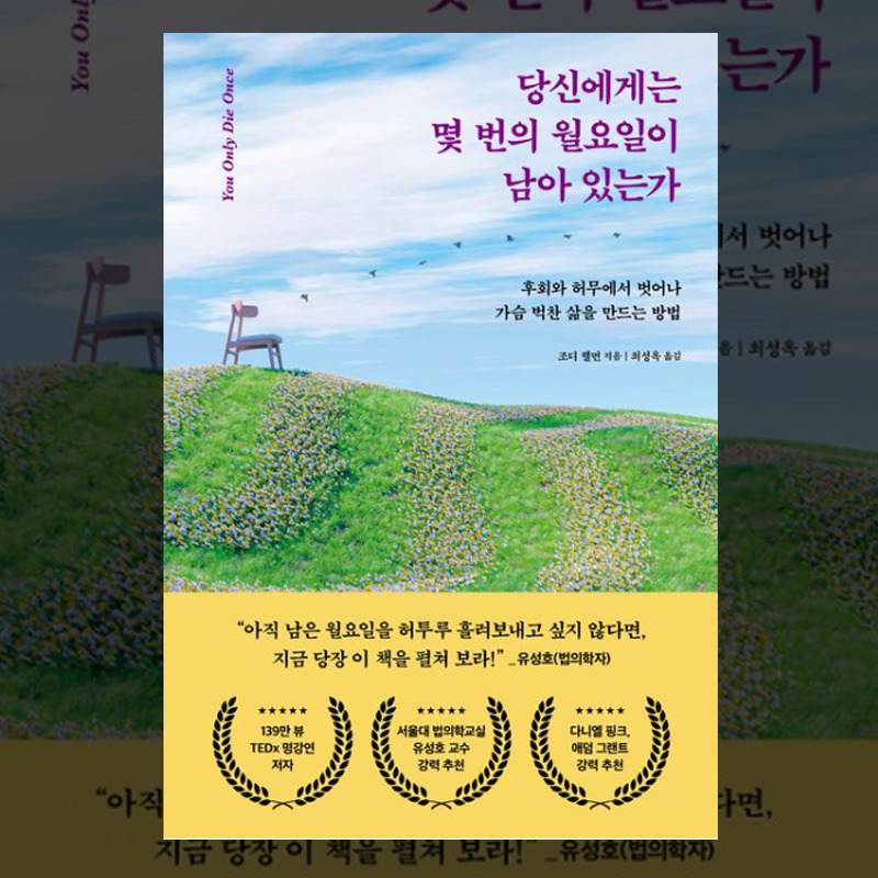 반복되는 생활에 대한 불평과 감사가 널뛰듯 지나가다 이 책을 읽게 됐다. 읽던 도중, 책 앞에 '남은 월요일을 세어 보라.'는 문구가 눈에 띄었다. 내게 남은 월요일이 몇 번이나 되는지 궁금해 계산해 봤다. 여성 평균 수명인 81살까지 살 수 있다 가정했을 때, 남은 월요일이 생각보다 없었다. 2천몇백의 월요일이라, 한참 남았구만? 생각할 수 있지만, '생각보다 없네?'라는 생각이 문득 들었다.