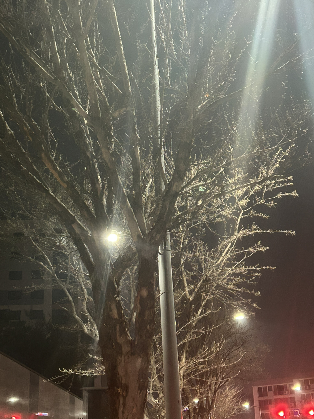 새벽 가로등 아래서 본 새순은 얼핏 보면 빗방울이 맺힌 것처럼 예뻐 보였다.