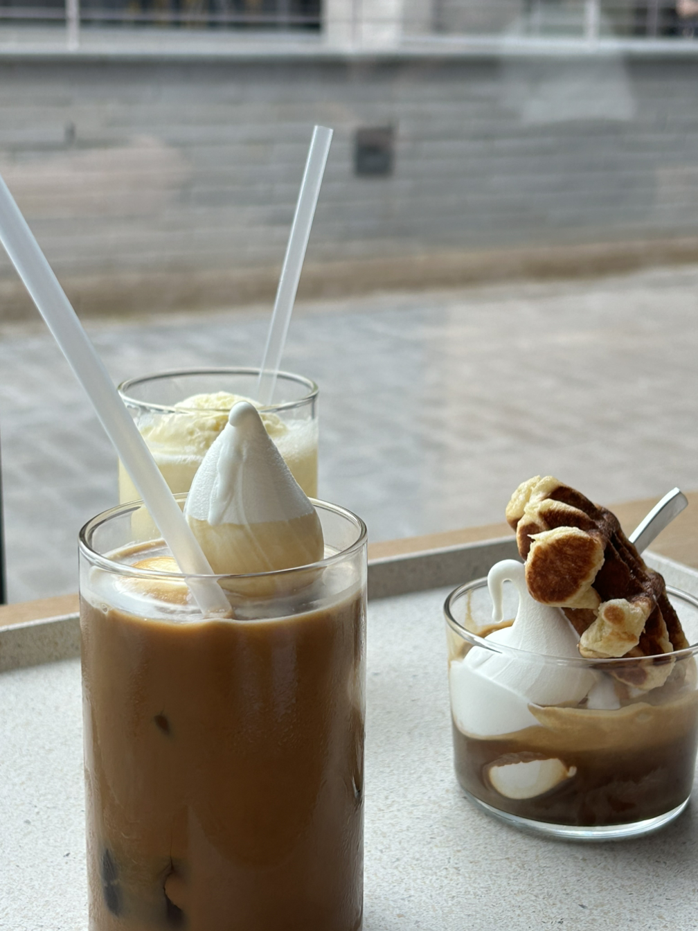 태어나 첨 맛본 블루보틀. 맛있.. 는데? 맛있다. 유제품 먹으면 안 된다면서 와플+아이스크림 클리어.