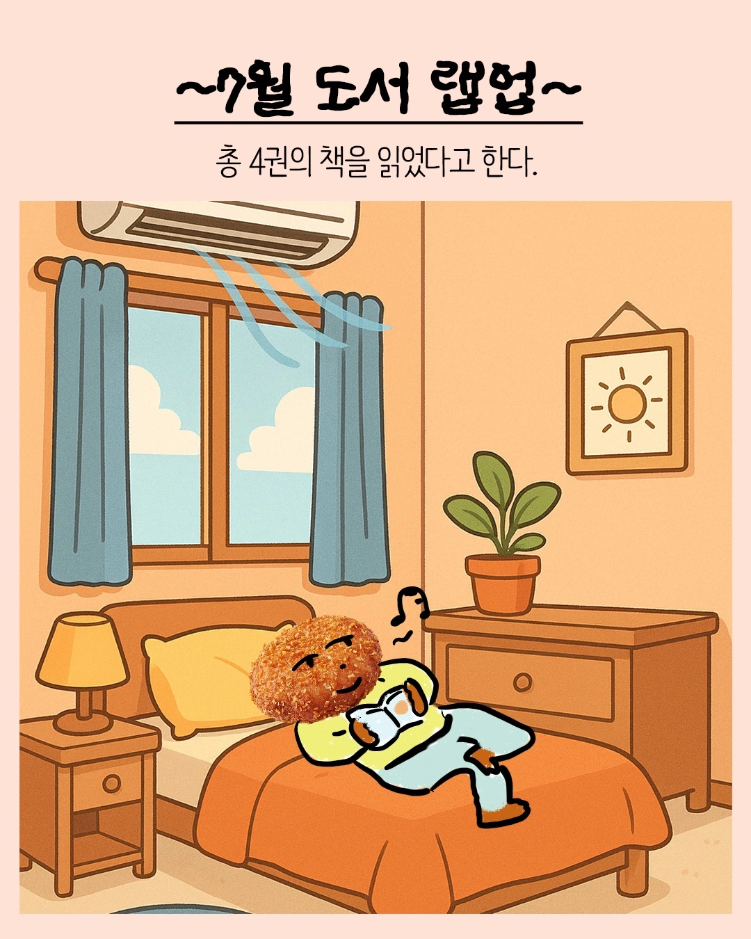 독서기록 랩업을 했다. 딱 저 자세로 침대에 누워 책을 읽고 싶다. 이글거리는 태양은 마치 딴 세상이라는 듯이, 서늘하게 에어컨을 틀고 말이다.