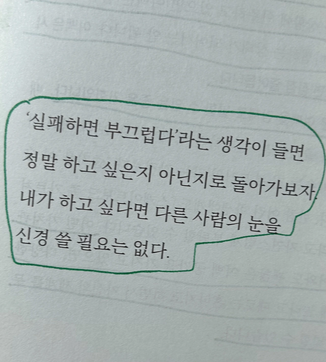 ‘실패하면 부끄럽다.’라는 생각이 들 때는 주로 내가 하고 싶지 않은 일이거나, 상대방을 밟아버리고 싶을 때였다.