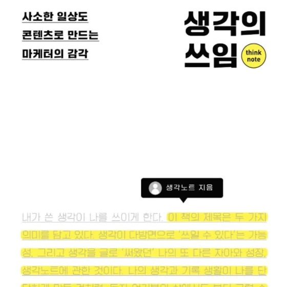 : 도서관에서 빌린 책. 심지어 이 책 내가 도서관에 직접 '도서 신청'해서 받기까지 한 달 반 정도가 소모된.. 기다림의 끝판왕 책이다. 와핫핫! 새 책을 도서관에서 읽는 그 기분이란.. 크. 여하튼, 전부터 인스타그램을 팔로우하던 분인데, 책을 냈다 하여 직접 읽게 된 책. 내가 느낀 책의 전반적인 내용은 '콘텐츠를 꿰뚫는 통찰력과, 그 콘텐츠를 나만의 콘텐츠로 소화하는 능력이 필요하다'인데 격하게 공감이다. 개인적으로 나는 독서노트라는 것을 쓰는데, 말이 노트지 그냥 책에서 발췌한 (내가 느끼기) 좋은 부분만 옮겨 적다 보니 나중엔 기억도 잘 안 나고, 실제 내 삶에 녹여내는 부분은 0.1%에 가까운데 이 분 말대로 '타인의 콘텐츠를 녹여 내 생각과 내 콘텐츠로 만드는 것'이 중요하다고 느끼는 요즘이다.