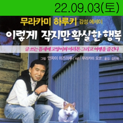 저렇게 촌스럽고 기괴한 책 표지는 처음 보는 것 같다. 자세히 보지 않으면 하루키 얼굴을 다른 사람 몸에 합성한 것 같기도 하고 고양이도 뭔가 부자연스럽다. 털 코트를 입은 건가? 싶었는데 살찐 고양이의 가죽이라고 해야 할까, 여하튼 살찐 고양이다. 기괴한 책 표지를 넘어선 책 내용은 무난하고 평범했다. 책 제목이 말하는 '이렇게 작지만 확실한 행복'에 대한 비법을 원한다면 추천하지 않겠다. 내가 본 하루키는 일상 루틴을 철저하게 지키고, 그 루틴 안에서 소소한 행복을 찾는 사람이었다. '이걸 하면 행복해질 수 있다!'라고 말하는 여느 작가들과 좀 달랐고, (예를 들면, 내 입장에서 이런 부류의 책은 '미라클 모닝'이다) 그저 소소하게 자신의 루틴을 지키면서 성실하게 살면 거기서 행복을 맛볼 수 있다 말하는 사람이 하루키 아닌가 싶다. 나는 후자에 속하므로 하루키의 방식이 좋다.