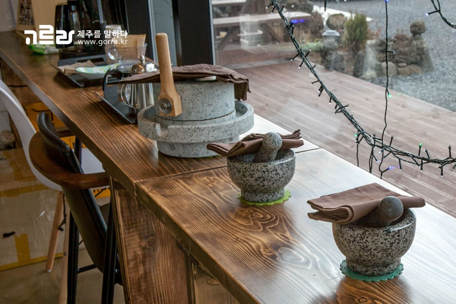 카페 내부의 돌절구가 시선을 끄는 북촌카페는 제주시 조천읍에 위치하고 있습니다. 초코와 찰떡궁합인 커피가 맛있기로 소문난 이곳은 맷돌커피와 절구커피를 메뉴로 선택해 핸드드립을 체험할 수 있는데요~!