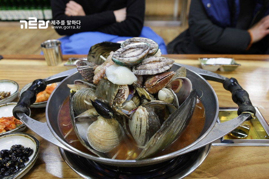 제주의 신선한 해물을 듬뿍 담아 내놓는 해물탕! 제주의 해안도로를 달리다보면 해산물이 가득 담긴 수조를 자주 볼 수 있는데요~ 제주의 해물탕은 산낙지와 전복이 가득 들어가 외국인들을 놀라게 하기도 했습니다^^ 그렇지만 이내 해물탕 맛에 흠뻑 빠졌다는 건 안 비밀!