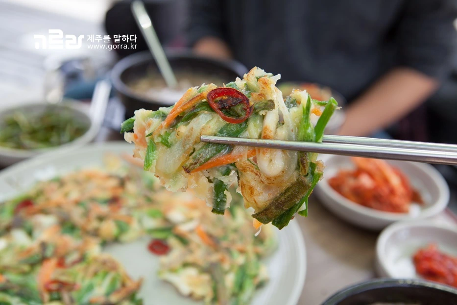 제주산 해물이 가득 들어간 해물파전은 외국인 친구들에게 인기 메뉴였죠~? 바삭바삭한 부침개를 젓가락으로 찢어 간장에 콕 찍어 먹으면! 다른 메뉴들이 나오기전에 동이 나버린 해물파전! 메인메뉴에 사이드로 시켜먹어도 좋고, 봄비가 내리는 날엔 해물파전을 메인으로 두고 제주막걸리 한 잔도 좋겠죠~?