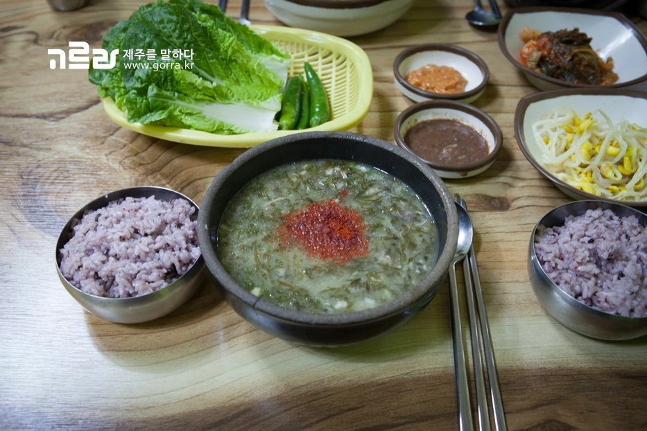 제주에서만 먹을 수 있는 몸국은 고기 육수에 불린 모자반과 돼지고기를 잘게 찢어 끓인 국이랍니다~ 왜 몸국이야? 라고 궁금하신 분들을 위해 설명하자면, 모자반을 제주에서는 '몸'이라고 불러 몸국이라는 이름이 붙었다고 하니 참 신기하죠? 취향껏 고춧가루를 살살 풀어먹어도 맛있는 몸국! 한번도 맛보지 않으셨다면, 이번 여행 먹방리스트에 추가!