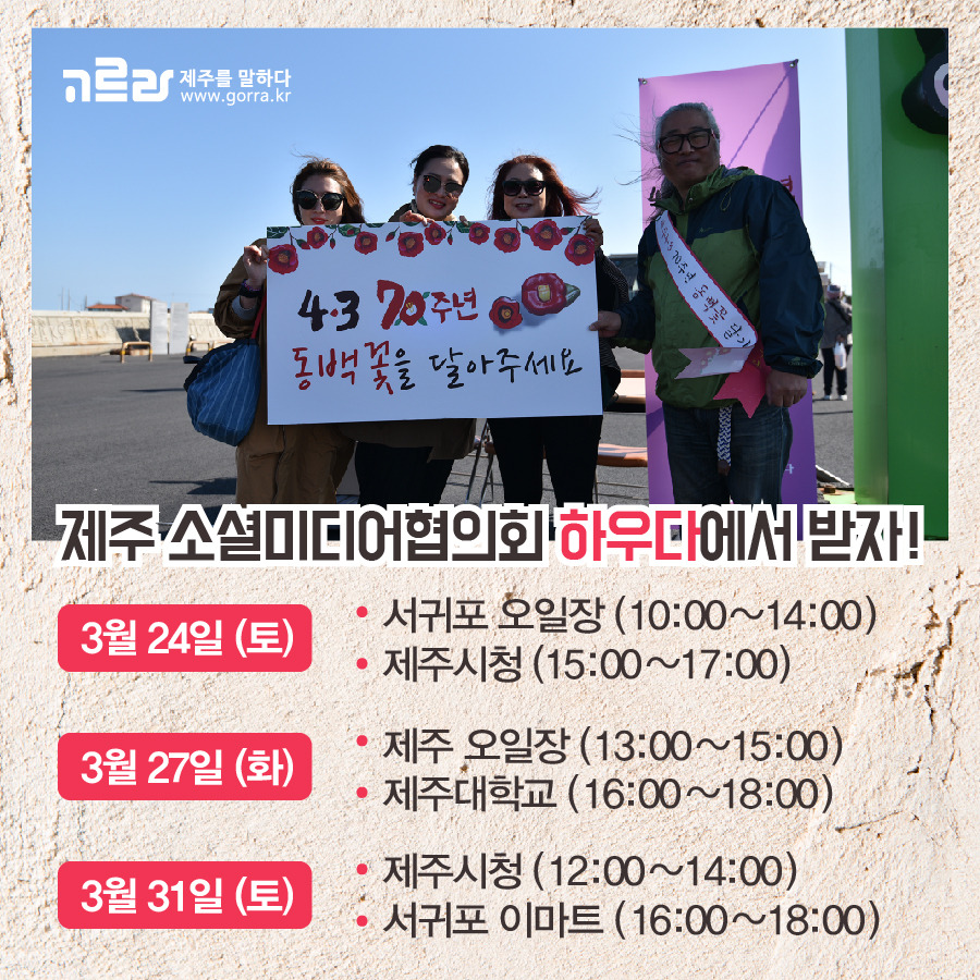 하우다와 함께 4.3 70주년 동백꽃을 달아주세요!