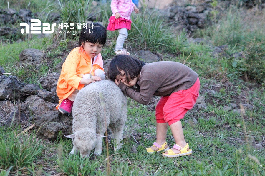 복슬복슬하게 자란 털이 부드러운지 자꾸만 쓰다듬고, 기대며 애정을 표하는 아이들의 입가에는 즐거움이 가득. 평소에는 보기 힘든 양들이 넓은 목장 안을 자유롭게 돌아다니는 광경이 신기한 곳입니다.