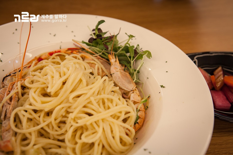 제주 딱새우와 오일 파스타의 만남은 새로운 듯하면서 익숙한 맛을 선사한답니다! 여기에 화이트 와인 한 잔을 곁들인다면, 점심과 저녁 어느 때나 좋겠지요~?