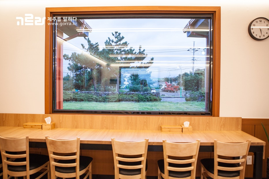 밖으로 펼쳐진 초록빛 제주 봄을 만끽하며 여유롭게 즐기는 한 상! 흑돼지국수 한 그릇이 조금 부족하다 싶으면, 오븐구이 돔베고기와 직화 돔베고기 중 한 가지를 추가하는 것도 굿!