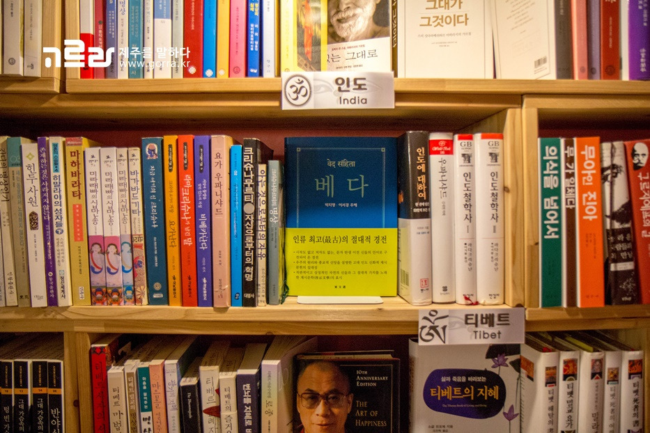 바가바드기타, 우파니샤드, 마하리쉬, 오쇼라즈니쉬 등의 인도 서적과 세계문학 및 인문학 책이 대부분을 차지하고 있습니다. 여기에 달콤쌈싸름한 짜이티 한 잔이면 머릿속을 가득 채운 생각들을 한 템포 정리할 수 있는 시간이 되겠죠?