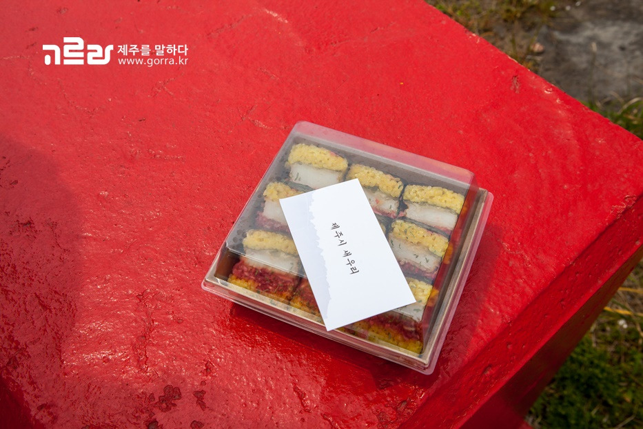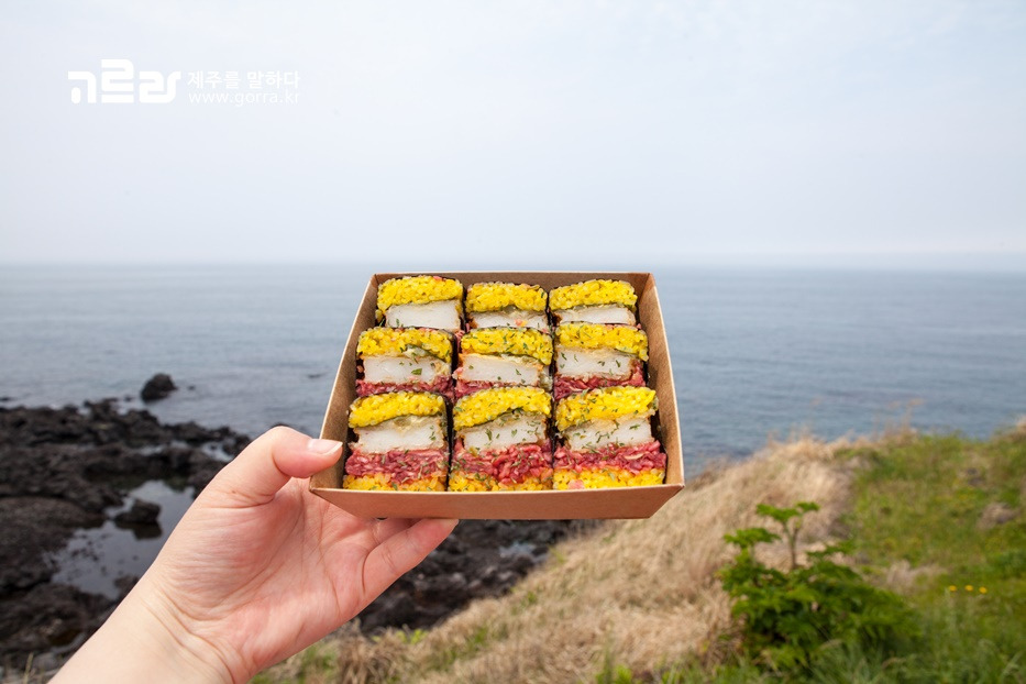 언뜻보면 제주 김만복김밥을 떠오르게 하는 딱새우김밥은 네모난 도시락에 담겨 나옵니다. 어느 곳에서나 간단하게 먹을 수 있는 김밥이니 한 손에 들고 가까운 해안도로로 향한다면 굿!