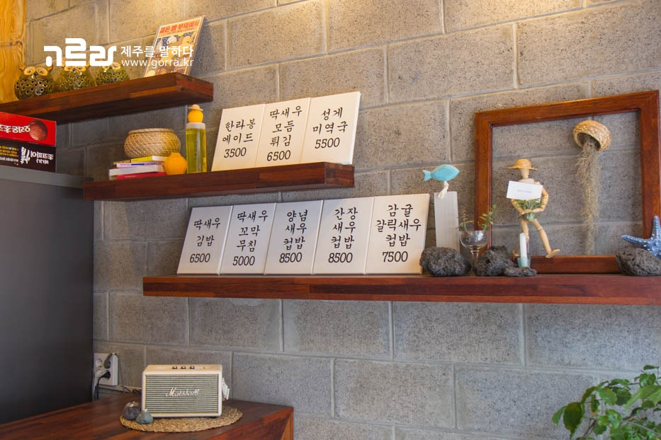 이곳에서는 딱새우김밥 이외에도 딱새우 꼬막무침, 양념 새우 컵밥, 간장새우 컵밥과 함께 제주를 느낄 수 있는 특별 메뉴인 감귤 갈릭 새우 컵밥, 성게 미역국, 딱새우 모둠튀김을 준비해 놓고 있습니다.