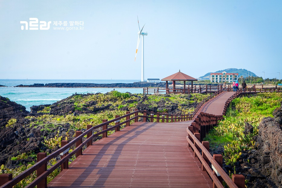 마을 전체가 선인장으로 둘러싸여 있어 이국적인 분위기를 풍기는 월령 선인장마을. 숨은 명소였던 이곳은 작년 TV 프로그램 '강식당' 배경으로 소개되면서 많은 사람들에게 알려졌습니다. 해안가를 지키고 있는 하얀 풍차와 나무데크의 산책로는 그냥 걷기에도 굿! 초록 선인장이 가득한 월령 마을에서 웨딩 촬영 어떠신가요?