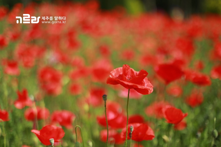 유채꽃이 스르르 지기 시작하면 렛츠런팜 제주에 떠오르는 양귀비! 붉은 꽃송이가 매혹적인 분위기를 만들어주는데요~ 쨍한 꽃잎 색의 양귀비와 함께라면 신비로운 분위기의 웨딩 사진이 되겠죠?