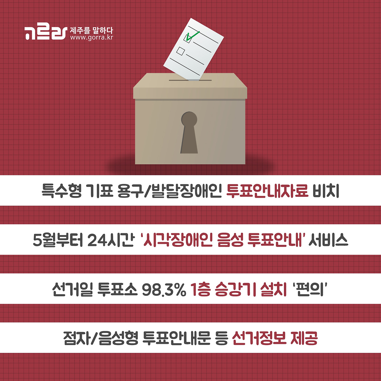 올해 조사를 진행한 제주장애인인권포럼은 이번 결과를 토대로 제주도 선거관리위원회에 개선을 요청했다고 하니, 이번 6.13 지방선거에는 모두 함께 선거 투표소에 어떤 부분들이 달라졌는지 관심을 가지고 지켜봐야겠죠?