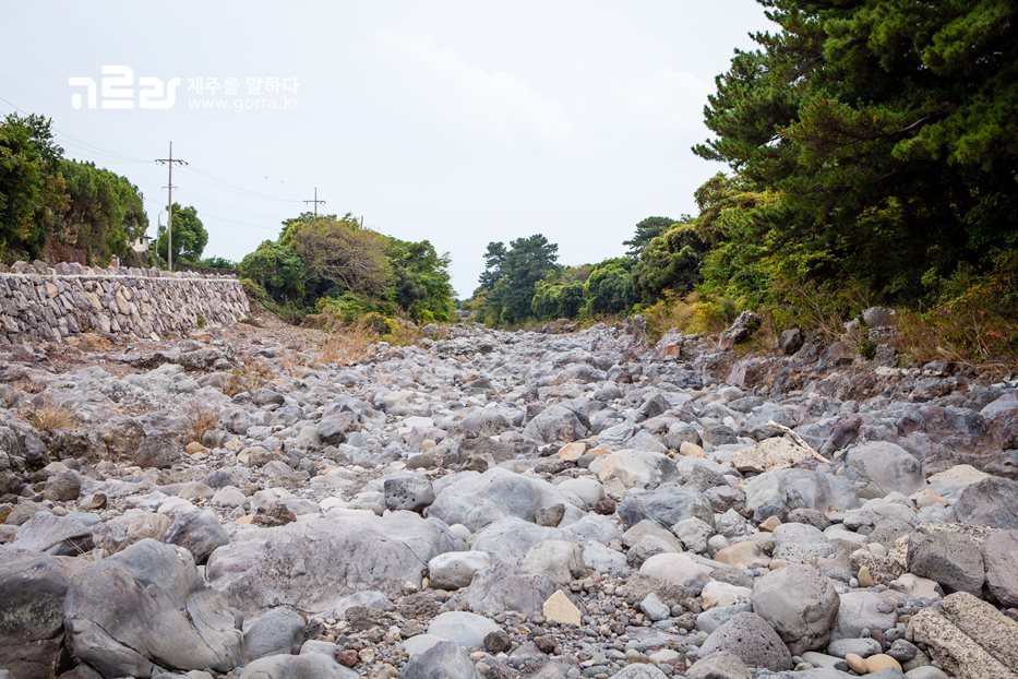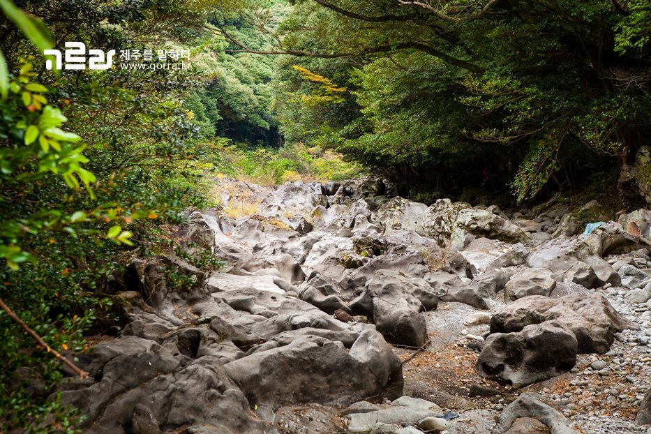 하례리 내창트레킹이 진행되는 장소인 효돈천은 총 13km의 길이로 한라산 남사면을 대표하는 최대 하천입니다. 한라산 정상에서 시작되는 이 물은 하례리 마을까지 내려와 쇠소깍에서 바다와 합쳐지는데요~