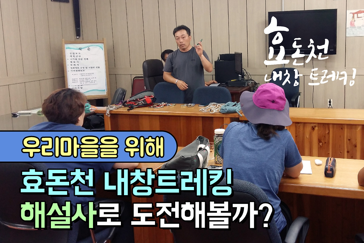 내창트레킹 해설사 양성과정 교육은 클라이밍 기법에 대한 이해, 효돈천 트래킹 실제, 하례2리 내창 트래킹 코스 개발 등의 내용으로 진행됩니다.