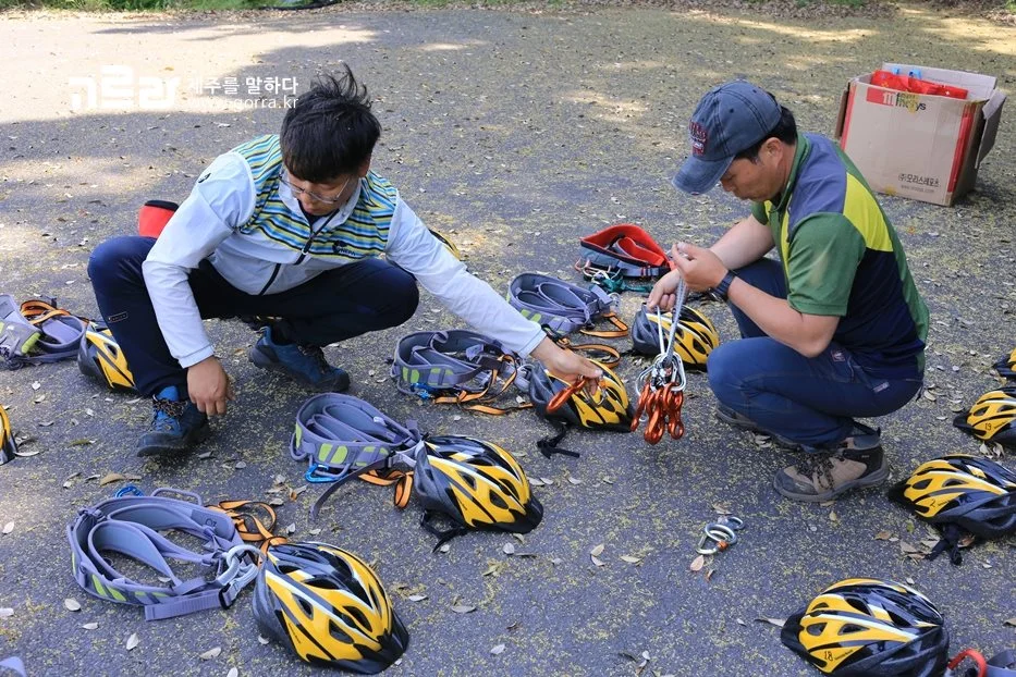 효돈천 내창 트레킹은 트레킹에 적합한 옷과 신발만 있으면 준비 완료! 그외에 필요한 안전모와 장비들은 모두 하례리생태관광마을에서 준비해준답니다~ 시작 전 꼼꼼한 안전 점검은 필수!