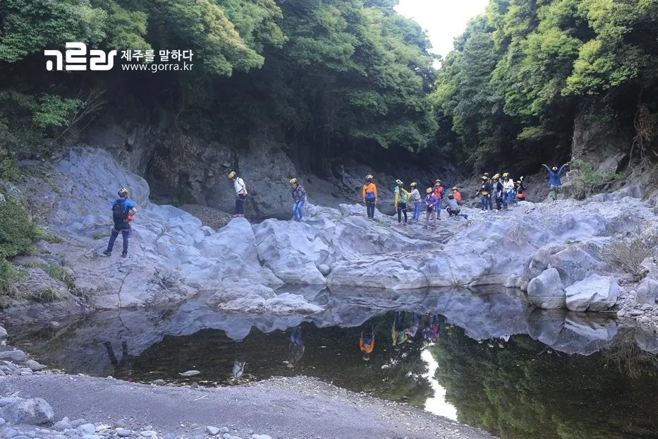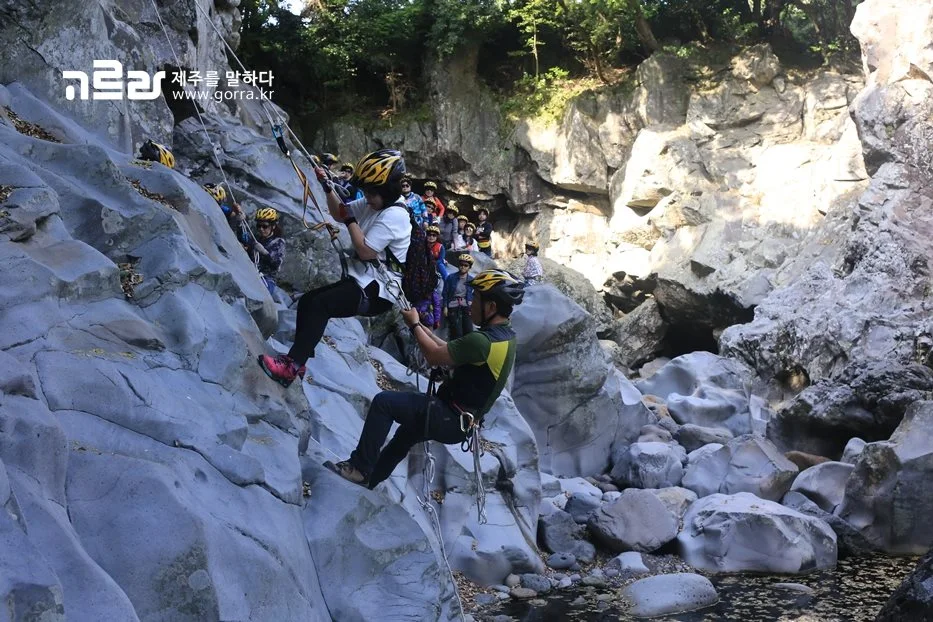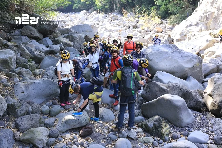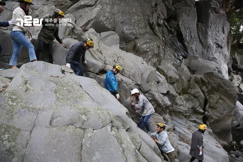 효돈천 내창 트래킹은 산을 오르내리며, 밧줄을 잡고 바위를 타는 흥미진진한 코스들이 많아 매년 이곳을 찾는 여행객들이 늘어나고 있답니다.