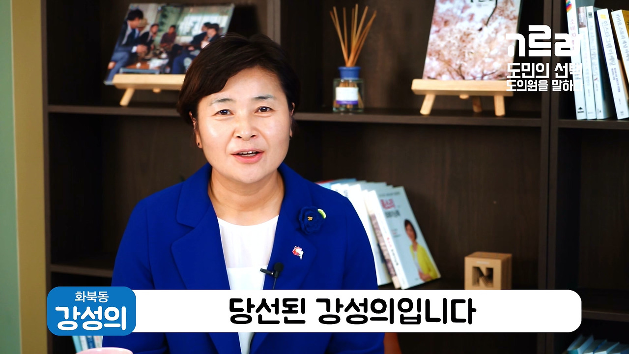 안녕하세요. 화북동에서 당선된 강성의 입니다. 큰 사랑에 감사드리고 진심으로 성의를 다해서 정치를 열심히 하고, 의정활동을 열심히 하겠다는 말씀드리겠습니다.