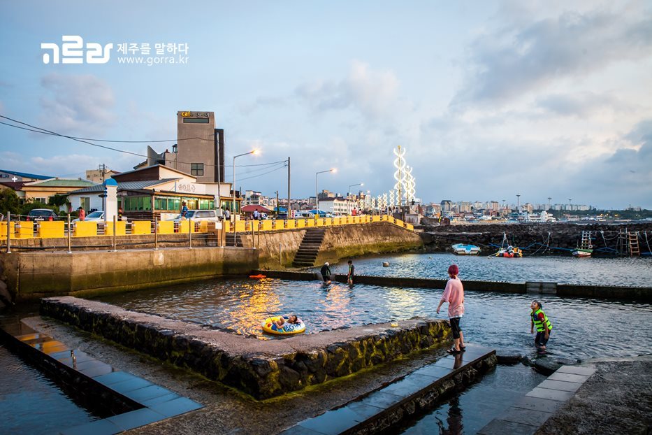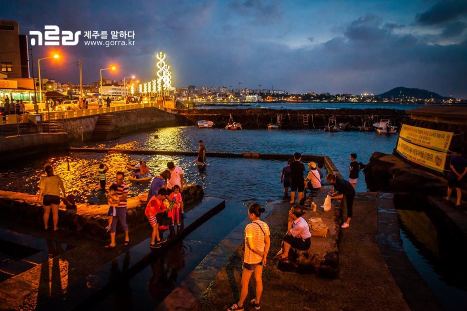 야간 개장을 하지 않는 삼양해수욕장에 비해 늦은 밤까지 이어지는 삼양 용천수 물놀이장! 단, 야간 물놀이 시 맨들맨들한 돌이 미끄러울 수 있으니 어른과 아이 모두 유의해야겠습니다.