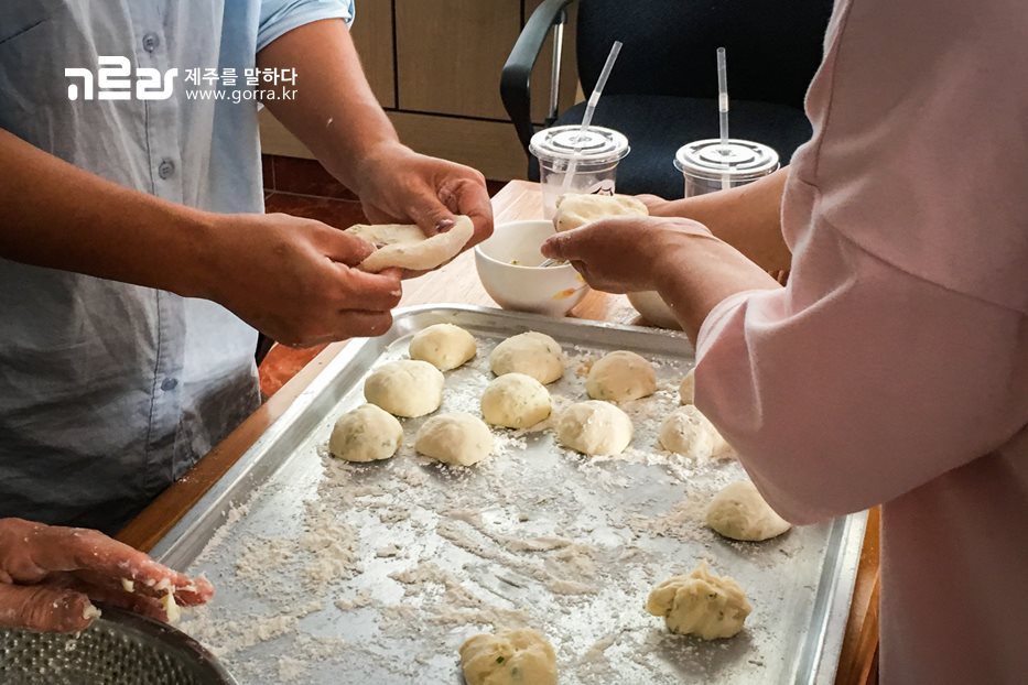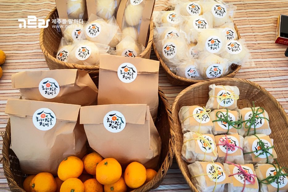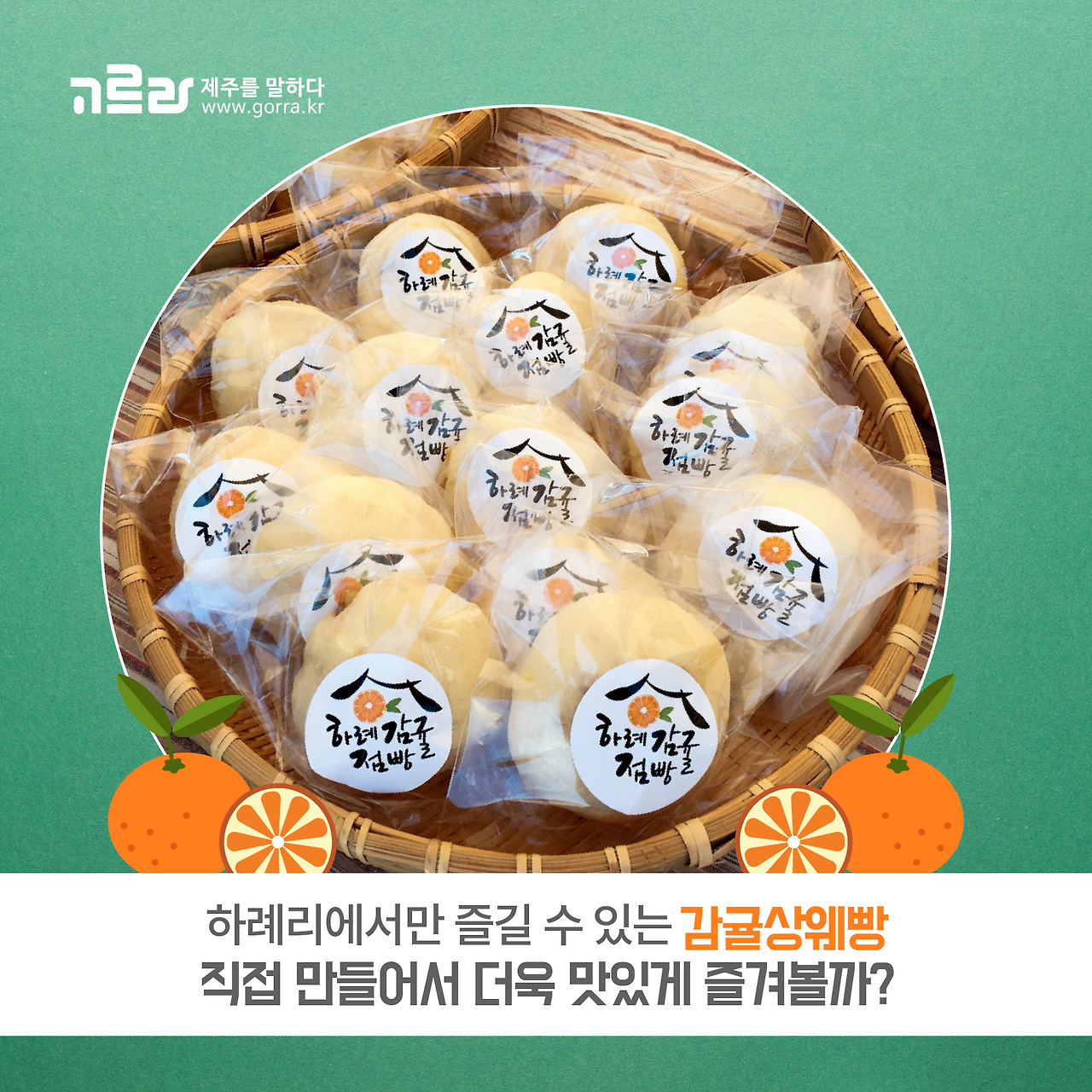 여기에 맛있는 먹거리를 만드는 체험도 있다는 사실! 하례감귤점빵협동조합에서는 감귤상웨빵 만들기 체험을 진행하고 있답니다~