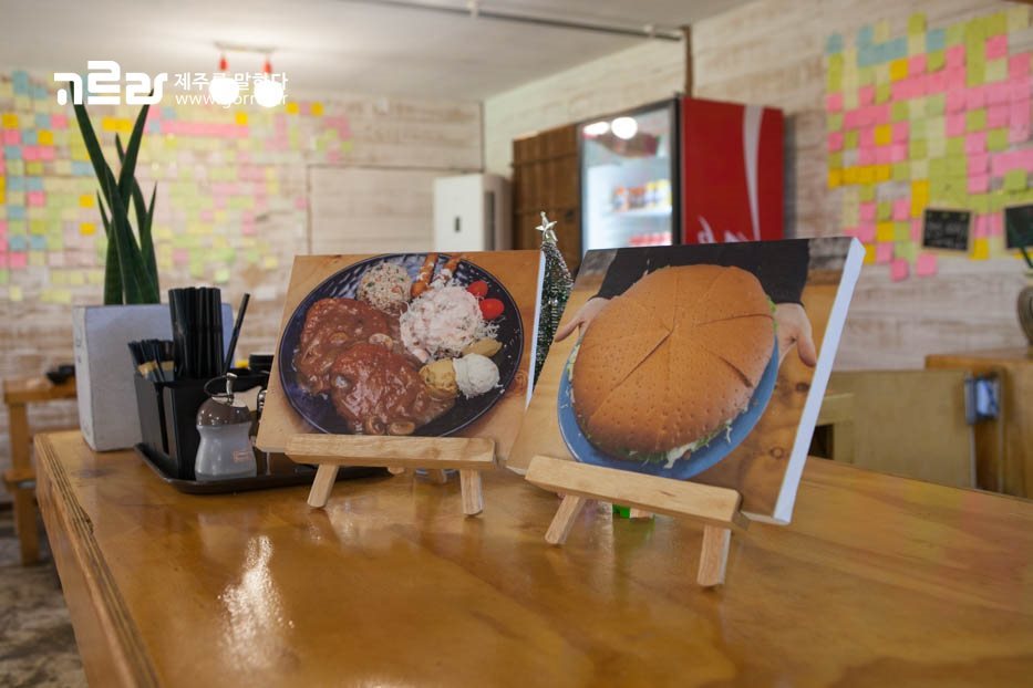 이곳의 대표메뉴는 바로 곤경버거와 돈까스! 어마어마한 크기를 자랑하는 곤경버거와 돈까스에는 모두 제주산 흑돼지를 사용한답니다! 흑돼지로 만들어진 버거와 돈까스~ 기대되시죠?