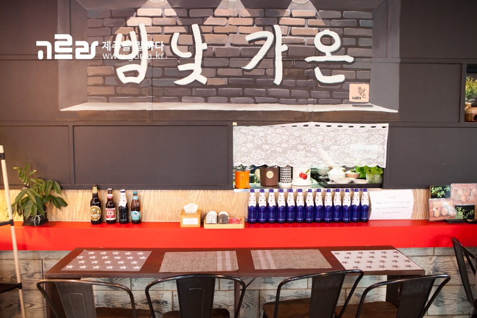 제주시청 근처에 위치한 밤낮가온은 점심에는 백반을 팔고, 저녁에는 술집으로 변하는 밥집 겸 술집입니다. 해가 떠 있는 오전에도, 달이 떠 있는 저녁에도 밥과 술의 중심이 되겠다는 사장님의 포부를 담아 지은 이름이랍니다.