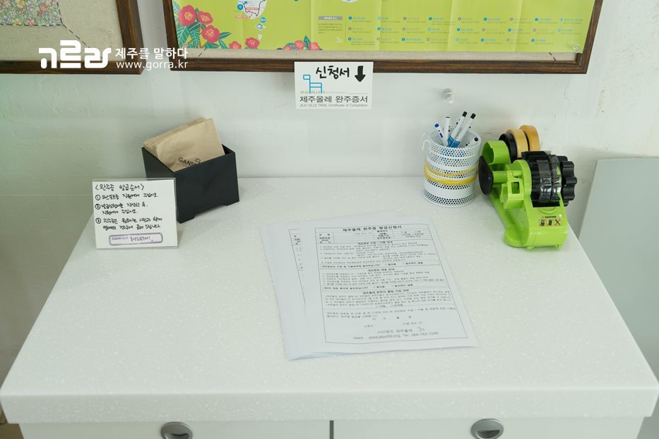 또한 제주 올레 완주증을 발급받을 수 있는 신청서 작성이 가능합니다. 완주증 발급을 위해서는 올레길 패스포트 확인은 필수이니 꼭 확인해주세요~