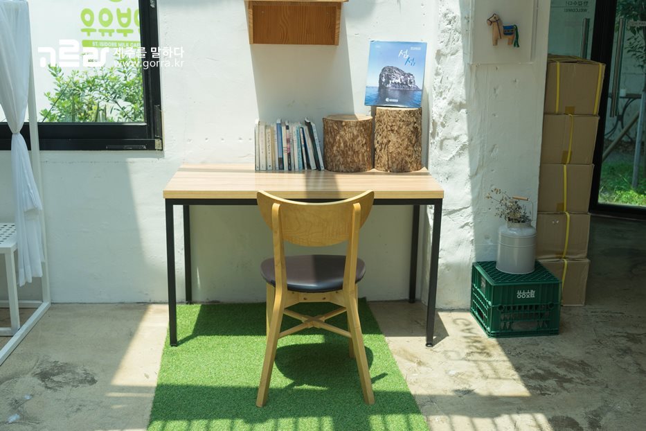 제주 카페 우유부단 내부에는 성이시돌 목장에서 볼 수 있는 하얀 우유각 모양의 조형물도 함께 설치되어 있어 성이시돌 목장 못지 않은 사진은 남길 수 있다는 점!